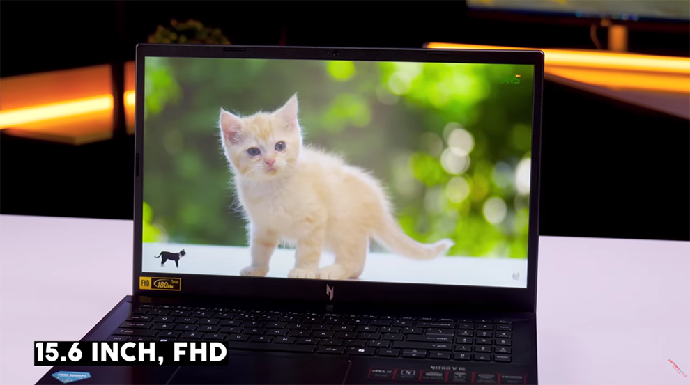 Điểm nhấn nổi bật nhất trên Nitro V 15 chính là màn hình 15.6 inch Full HD (1920x1080) IPS. Mang lại hình ảnh sắc nét, màu sắc sống động và chính xác, nhờ độ phủ màu 100% sRGB cùng độ sáng 300 nits. Đặc biệt, tần số quét 180Hz mang đến trải nghiệm siêu mượt, giúp mọi chuyển động trong game trở nên trơn tru và giảm thiểu tối đa hiện tượng xé hình. Với chất lượng hiển thị ấn tượng này, Nitro V 15 không chỉ phục vụ tốt cho game thủ mà còn là lựa chọn lý tưởng cho người làm đồ họa, chỉnh sửa ảnh và video.