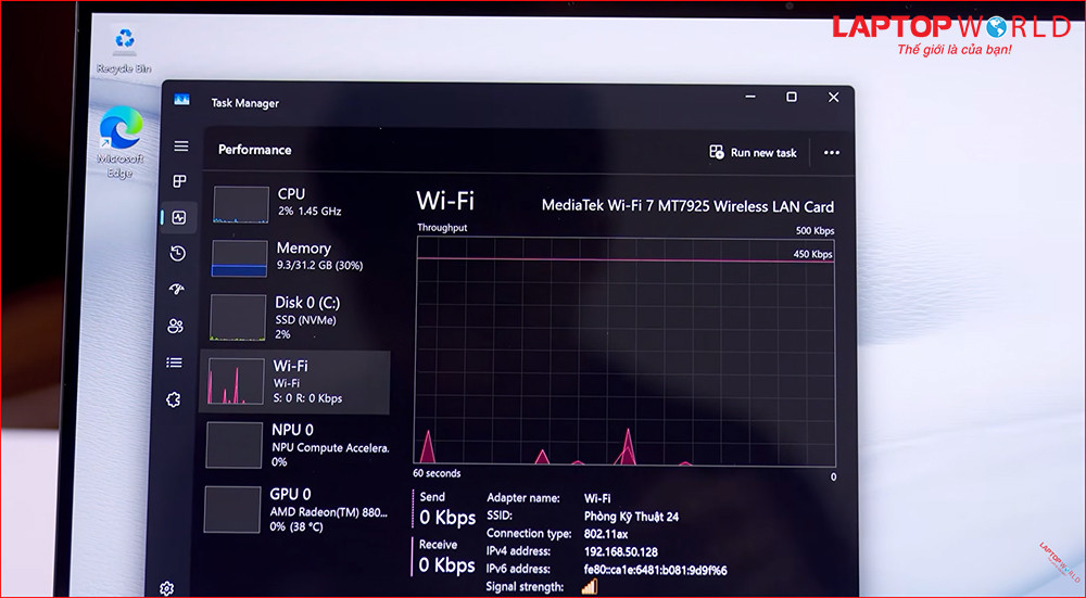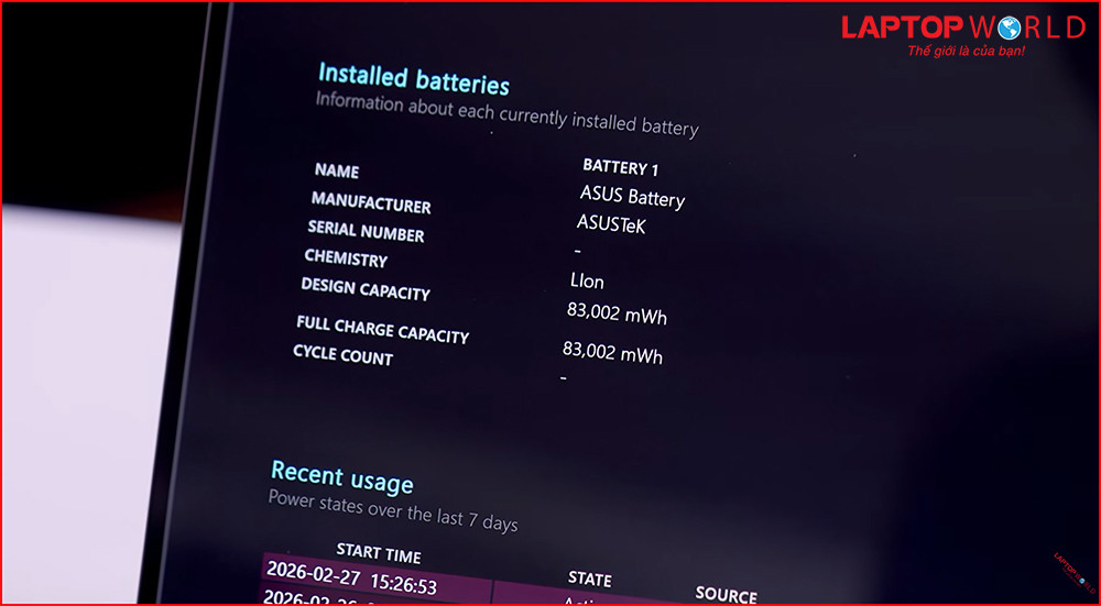 Dù có thân hình siêu mỏng chỉ hơn 1cm, ASUS vẫn gây bất ngờ khi trang bị viên pin dung lượng lớn lên tới 83Wh, cho thời gian sử dụng thực tế ấn tượng, giúp bạn làm việc suốt ngày dài mà không cần lo lắng về bộ sạc. Máy cũng hỗ trợ chuẩn Wi-Fi 7 mới nhất, cho tốc độ kết nối nhanh gấp nhiều lần so với thế hệ trước.