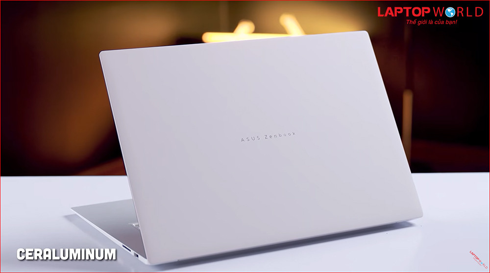 Điểm nhấn ấn tượng nhất của Zenbook S16 chính là lớp vỏ được làm từ Ceraluminum™ – một loại vật liệu nhôm gốm độc quyền của ASUS. Qua quá trình xử lý nhiệt độ cao, bề mặt máy không chỉ có độ bền chuẩn quân đội mà còn mang lại cảm giác chạm tự nhiên như đá, khả năng chống trầy xước và bám vân tay gần như tuyệt đối.