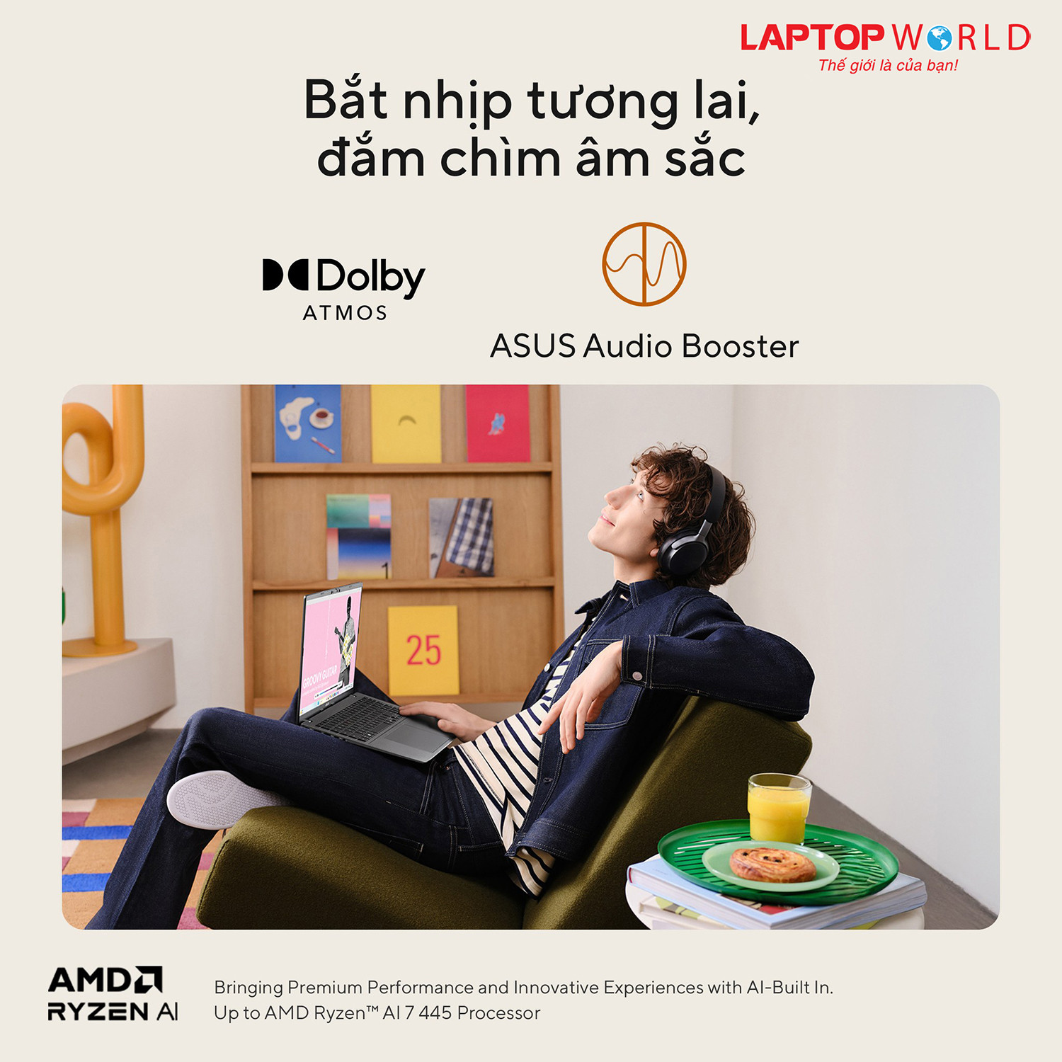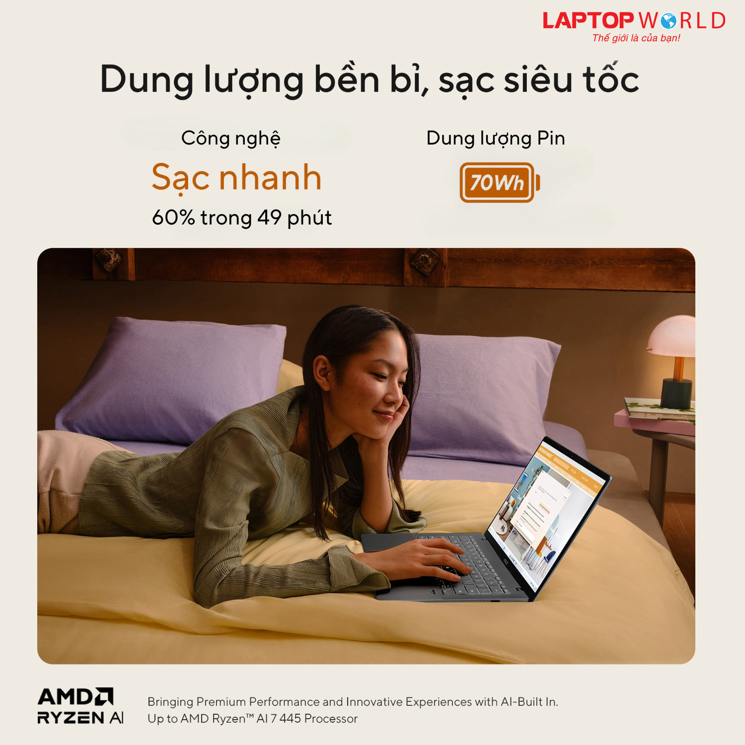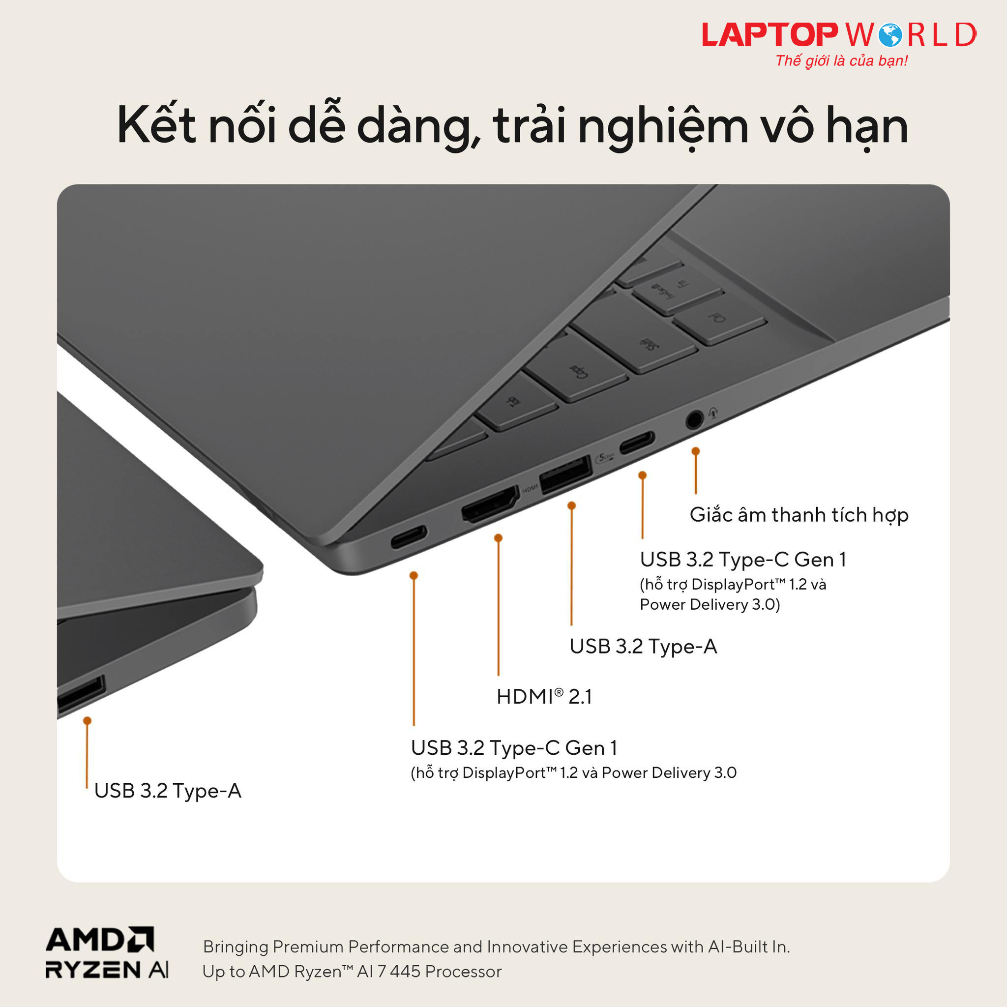 Với vi xử lý AMD Ryzen AI 7 445 mới, máy là một trong những laptop AI đầu tiên có mặt tại Việt Nam, mang lại khả năng xử lý các tác vụ AI hiệu quả, lý tưởng cho các tính năng Copilot+ PC của Microsoft và các ứng dụng sáng tạo khác.