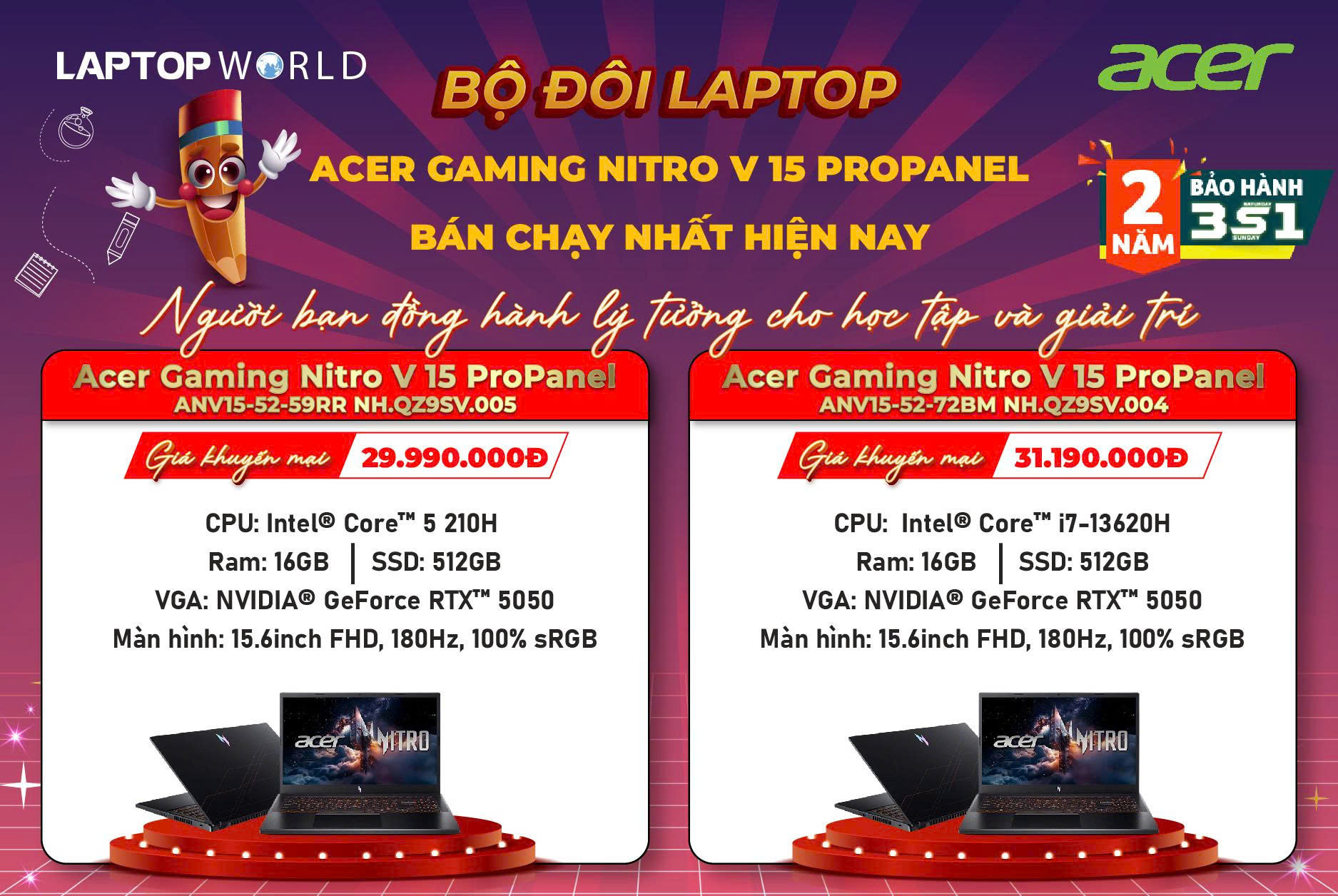 Bộ đôi Acer Nitro V 15 ProPanel không chỉ đơn thuần là bản nâng cấp cấu hình, mà là một lời khẳng định thế mạnh của Acer trong việc dẫn đầu công nghệ. Với sự kết hợp giữa sức mạnh của RTX 5050 và độ chuẩn xác của màn hình ProPanel, đây chắc chắn là hai ứng cử viên sáng giá nhất cho ngôi vị "Laptop Gaming đáng mua nhất 2025".