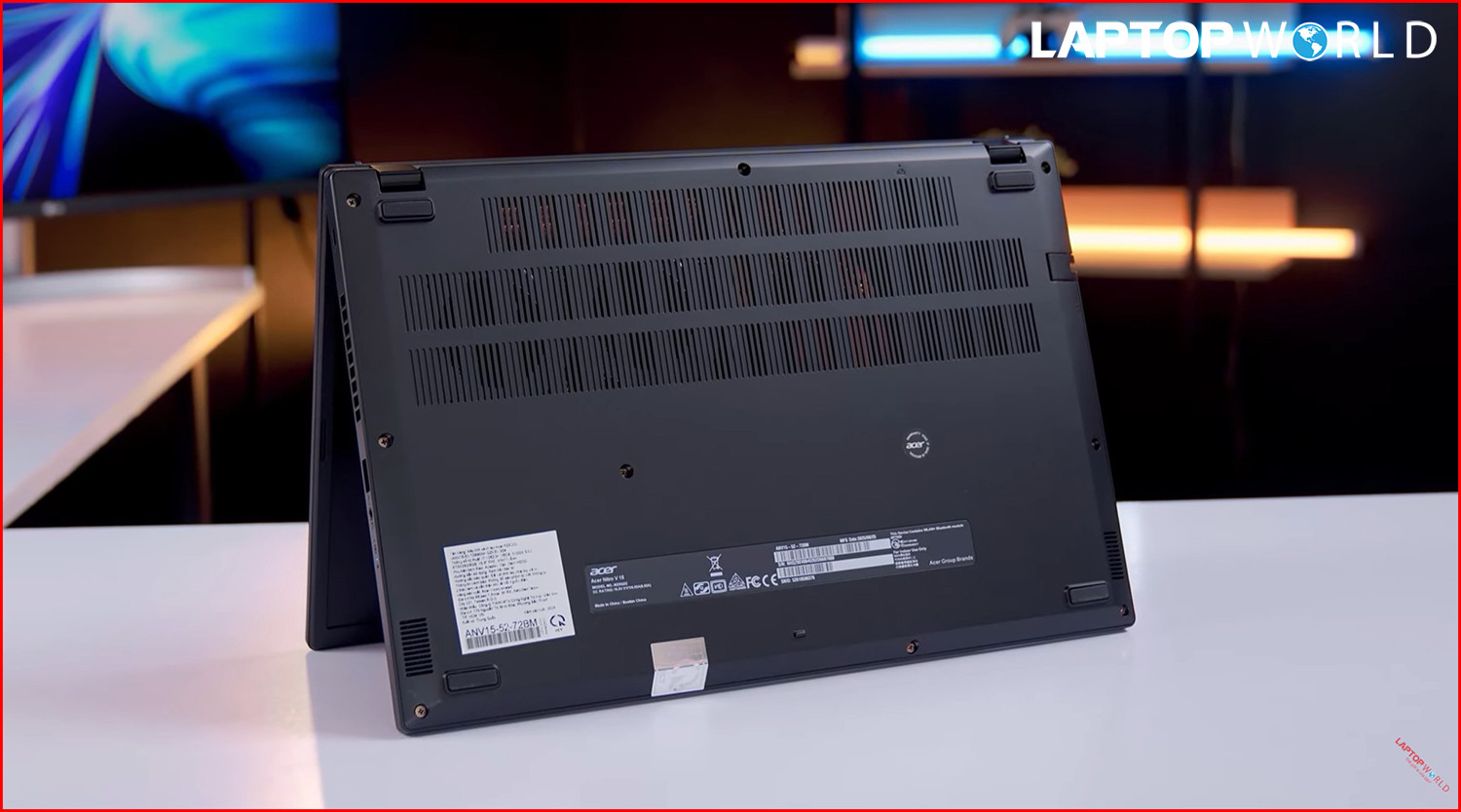 Acer Nitro V 15 vẫn giữ được nét trẻ trung với logo Nitro đặc trưng và tông màu đen xám huyền bí.