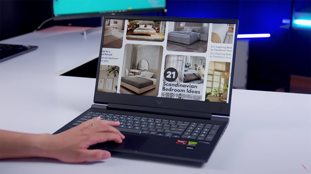 HP Victus gây ấn tượng với thiết kế cứng cáp, sắc nét, kết hợp logo Victus nổi bật mang phong cách trẻ trung và cá tính.