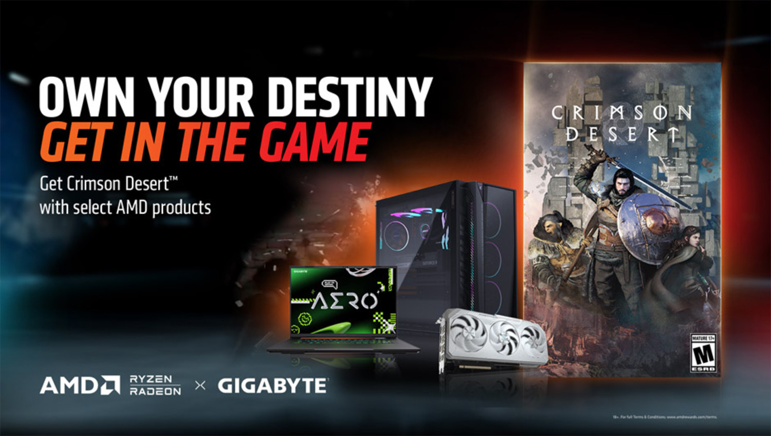 Trong thời gian diễn ra chương trình khuyến mãi, từ 10/02 - 25/04/2026, khách hàng khi mua Card đồ họa GIGABYTE Radeon™ RX 9070 / RX 9070 XT hoặc Laptop GIGABYTE AERO X16 (CPU AMD) tại Laptopworld sẽ có cơ hội nhận ngay code game Crimson Desert bản quyền.