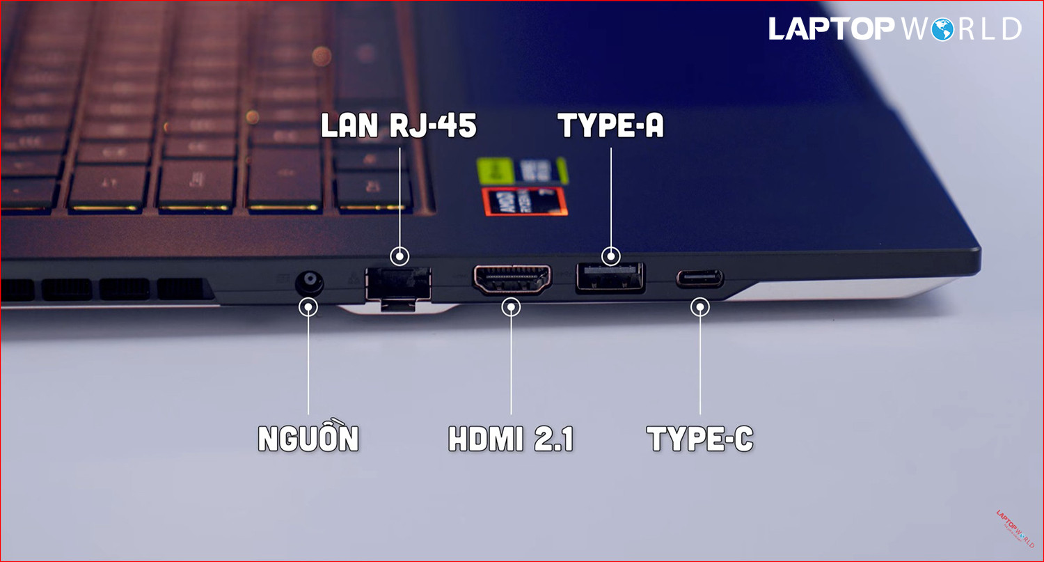 Dù mỏng nhưng AERO X16 không hề cắt giảm cổng kết nối. Máy trang bị đầy đủ USB4, HDMI 2.1 và đặc biệt là cổng LAN RJ45 – thứ mà nhiều laptop mỏng nhẹ đã loại bỏ.