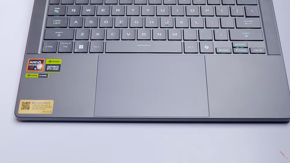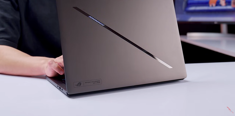 Lớp vỏ màu xám mang phong cách hiện đại, tối giản. Điểm nhấn độc đáo là dải đèn Slash Lighting chạy chéo mặt lưng máy, hỗ trợ hơn 15 hiệu ứng LED tùy chỉnh qua Armoury Crate giúp thiết bị không chỉ phù hợp với môi trường gaming mà còn dễ dàng xuất hiện trong không gian làm việc chuyên nghiệp.