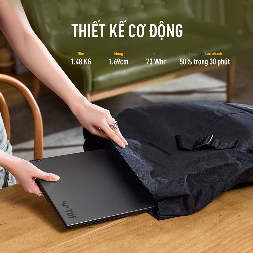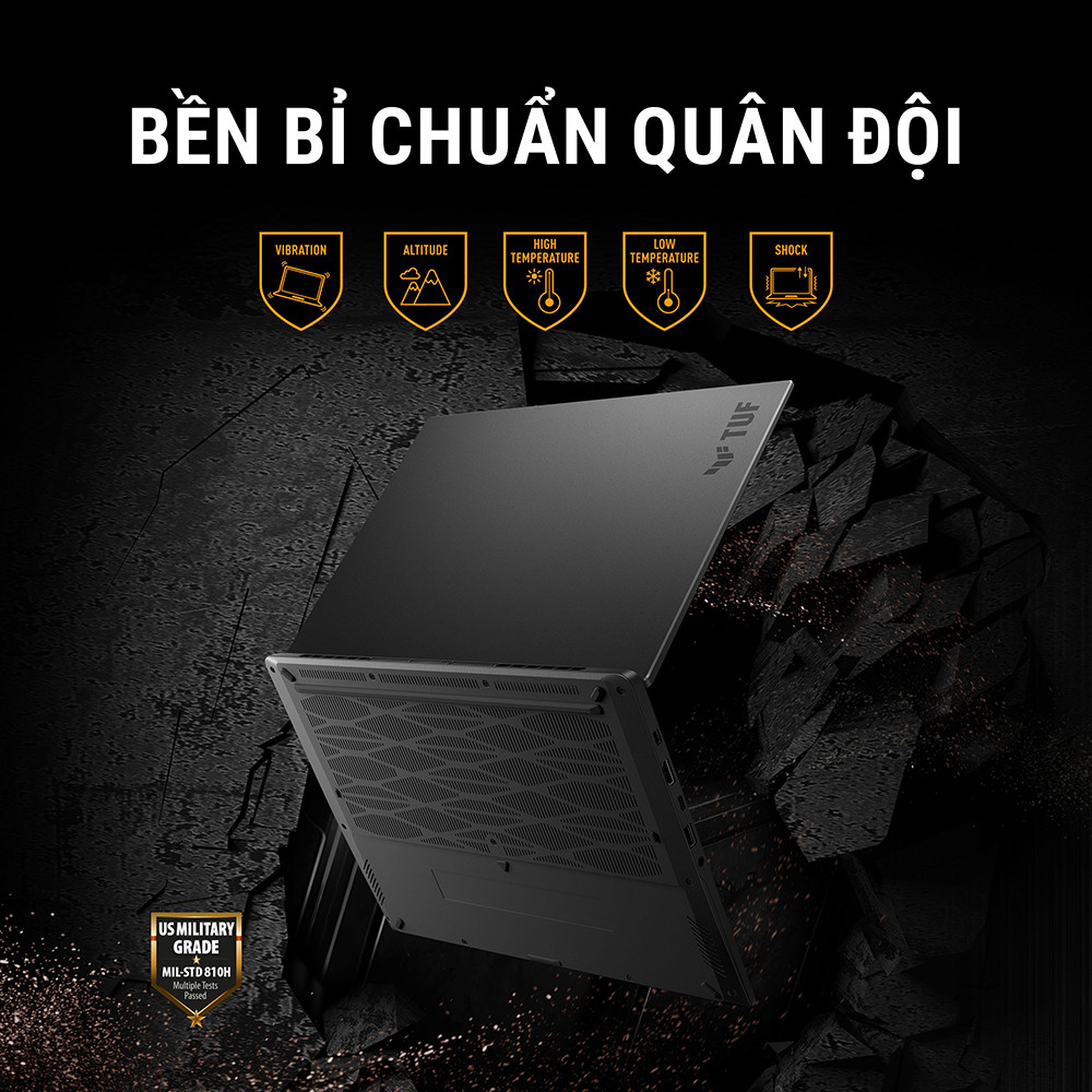 Di chuyển linh hoạt hơn bao giờ hết với trọng lượng siêu nhẹ chỉ 1.48kg. Dù mỏng nhẹ, TUF Gaming A14 vẫn giữ vững bản sắc gai góc đặc trưng của dòng TUF với vỏ máy CNC tinh xảo và độ bền đạt chuẩn quân đội Mỹ MIL-STD 810H. Máy có khả năng chống chịu va đập tốt, sẵn sàng xông pha và đồng hành cùng bạn trên mọi hành trình.