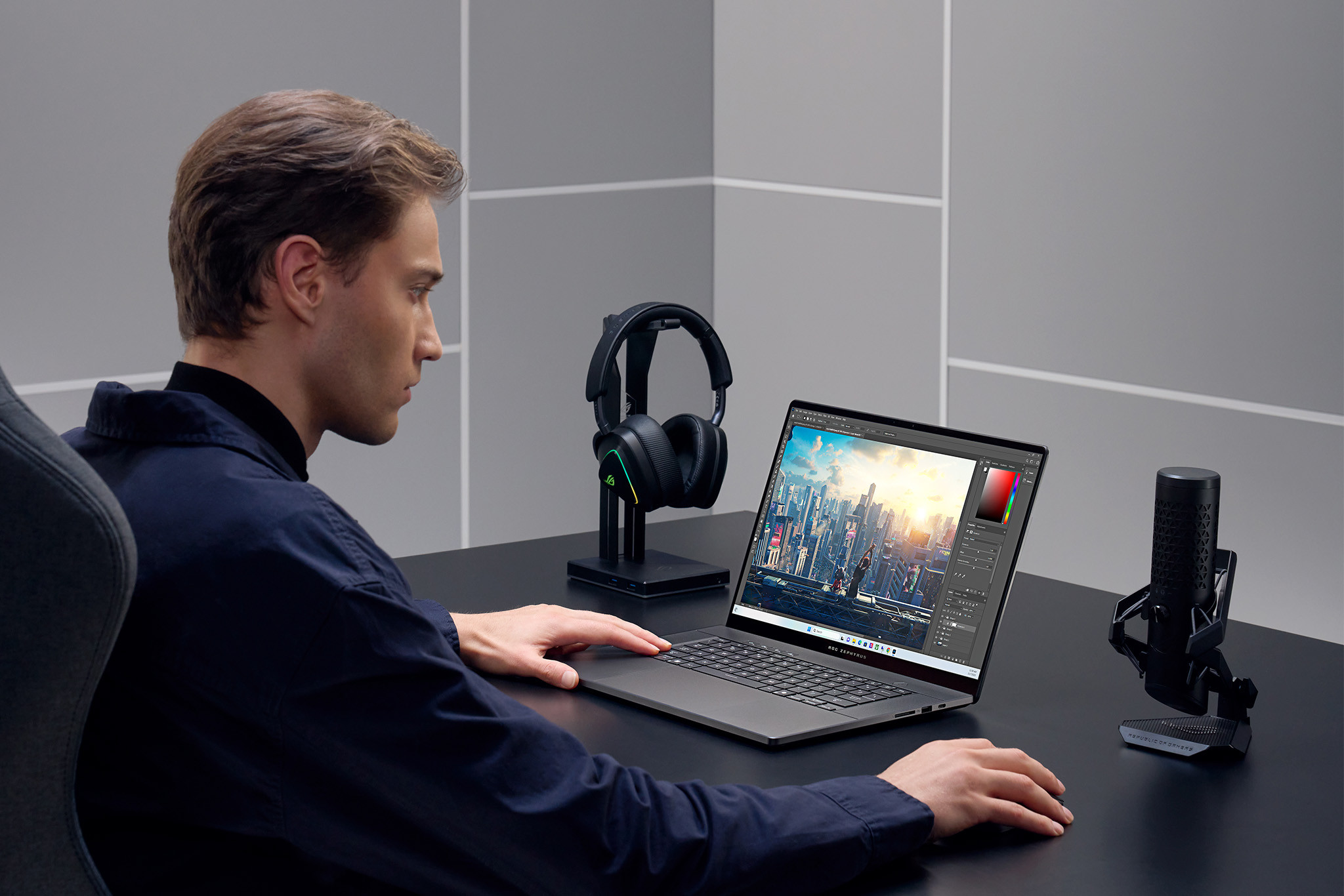 Với các editor video, photographer hay creator thường xuyên di chuyển, sự cân bằng giữa hiệu năng và tính cơ động là yếu tố then chốt. ROG Zephyrus G14/G16 mang đến thiết kế mỏng nhẹ hơn nhưng vẫn sở hữu hiệu năng mạnh mẽ với CPU AMD Ryzen AI 9 HX 370 hoặc Intel Core Ultra 9 285H, đủ để xử lý các phần mềm như Premiere Pro, DaVinci Resolve hay Lightroom. Màn hình ROG Nebula OLED kết hợp thời lượng pin tốt giúp người dùng làm việc linh hoạt hơn.