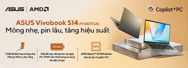 Laptop ASUS Vivobook Go 14 E1404FA-EB935W (Ryzen™ 5 40 | 16GB | 512GB | AMD Radeon™ Graphics | 14 inch FHD | Win 11 | Bạc)