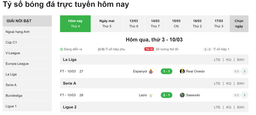 Trong thời đại công nghệ số phát triển mạnh mẽ, nhu cầu theo dõi kết quả bóng đá trực tuyến ngày càng tăng cao. Người hâm mộ không chỉ muốn xem tỷ số, mà còn cần cập nhật thẻ phạt, lịch thi đấu, bảng xếp hạng và các thống kê chi tiết theo thời gian thực - ngay trên điện thoại hay máy tính. Vậy đâu là những trang web xem kết quả bóng đá trực tuyến nhanh và chính xác nhất hiện nay? Bài viết dưới đây sẽ tổng hợp TOP 8 trang KQBD uy tín mà bất kỳ fan bóng đá nào cũng nên biết.