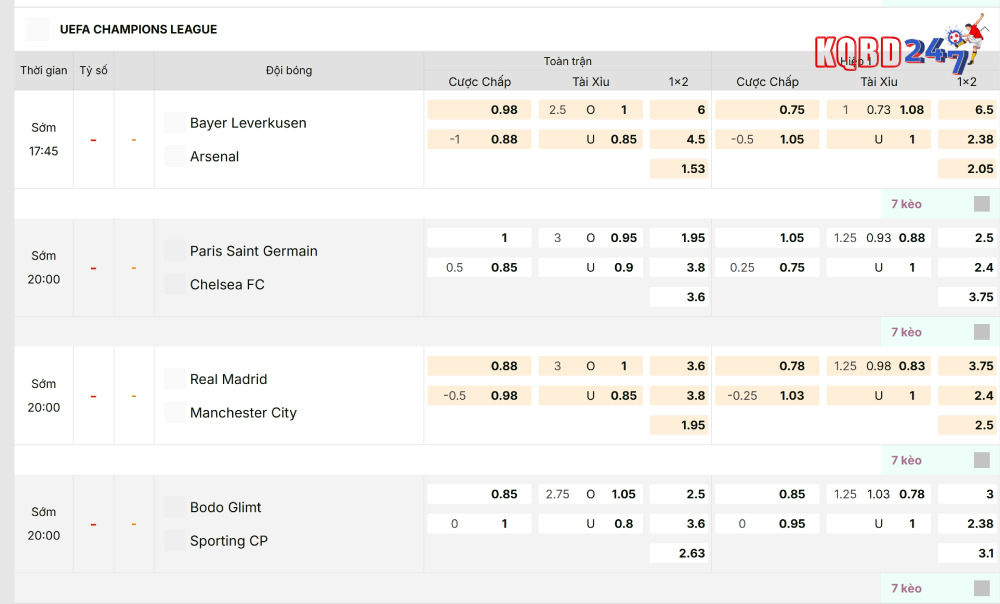 KQBD 247 luôn cập nhật những kèo với tỷ lệ tốt nhất thị trường
