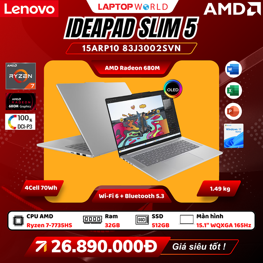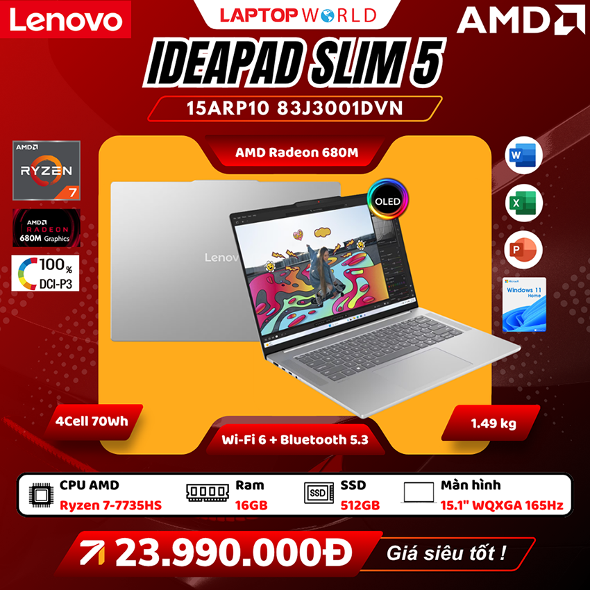 ➤ Xem sản phẩm tại: Lenovo IdeaPad Slim 5 15ARP10 83J3001DVN, Lenovo IdeaPad Slim 5 15ARP10 83J3002SVN