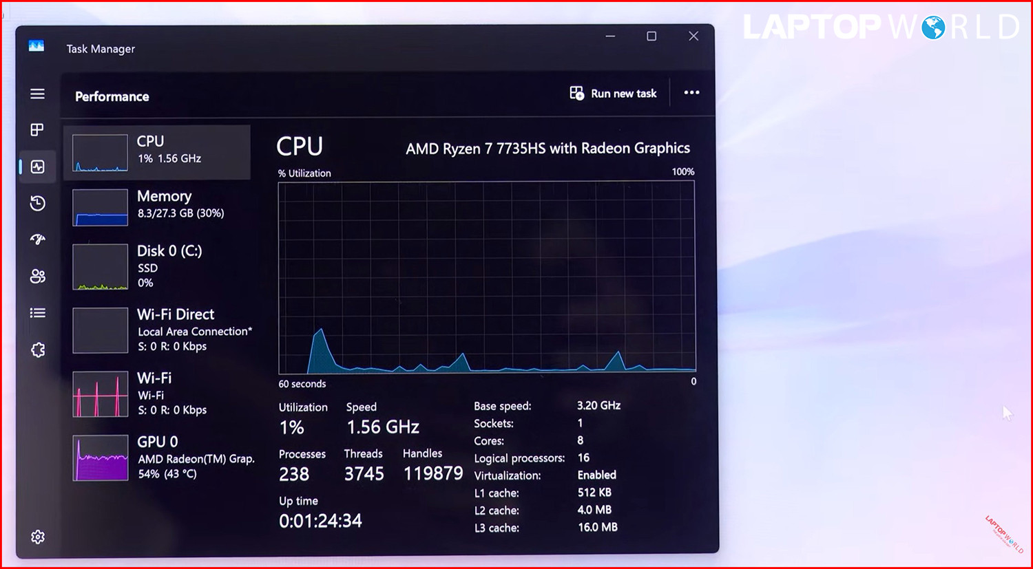 Đi kèm với đó là bộ vi xử lý AMD Ryzen™ 7 7735HS. Với cấu trúc 8 nhân 16 luồng và xung nhịp tối đa 4.75GHz, đây là dòng chip hiệu năng cao (dòng HS) giúp cân bằng hoàn hảo giữa sức mạnh xử lý và khả năng tiết kiệm pin.