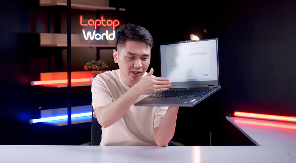 Về thiết kế, máy mang tông màu Luna Grey với phong cách tối giản, không quá hầm hố như nhiều dòng laptop gaming truyền thống. Điều này giúp người dùng có thể sử dụng linh hoạt trong môi trường học tập hoặc làm việc văn phòng. Trọng lượng khoảng 2.4kg cho thấy đây vẫn là một chiếc laptop thiên về hiệu năng, nhưng vẫn đủ cơ động để mang theo khi cần.