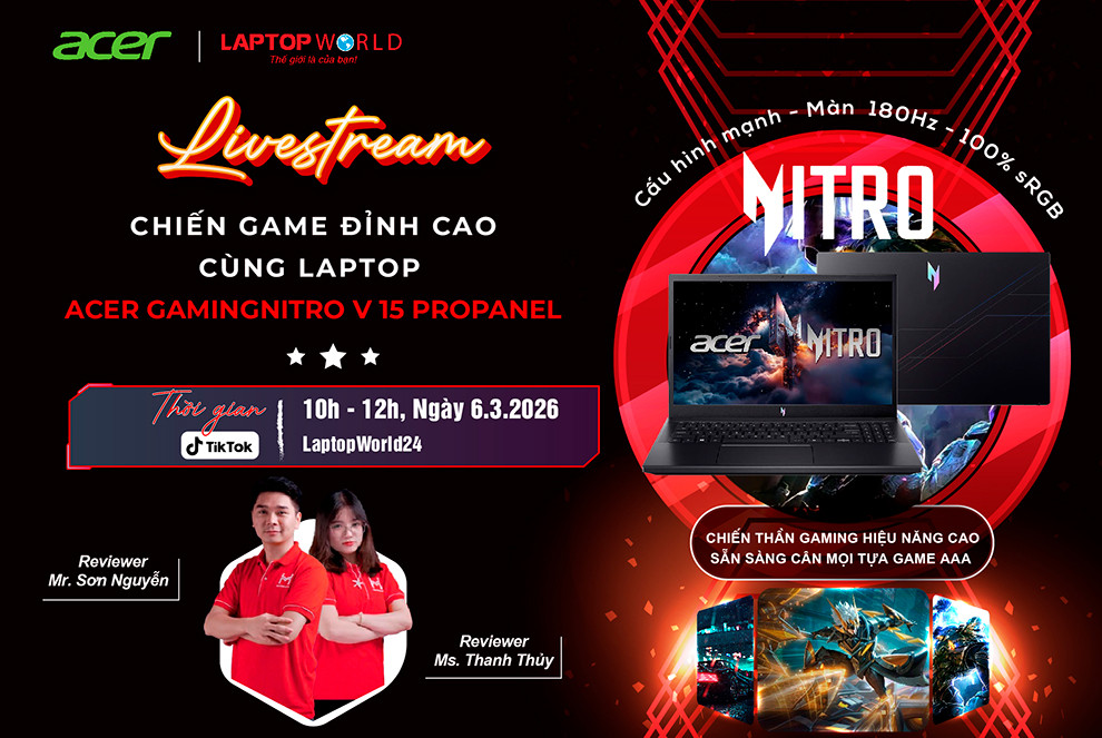 Các bạn Game thủ đâu rồi? Chuẩn bị lên sóng cùng LaptopWorld x hãng Laptop nổi tiếng Acer với buổi Livestream cực HOT dành cho anh em đam mê gaming!