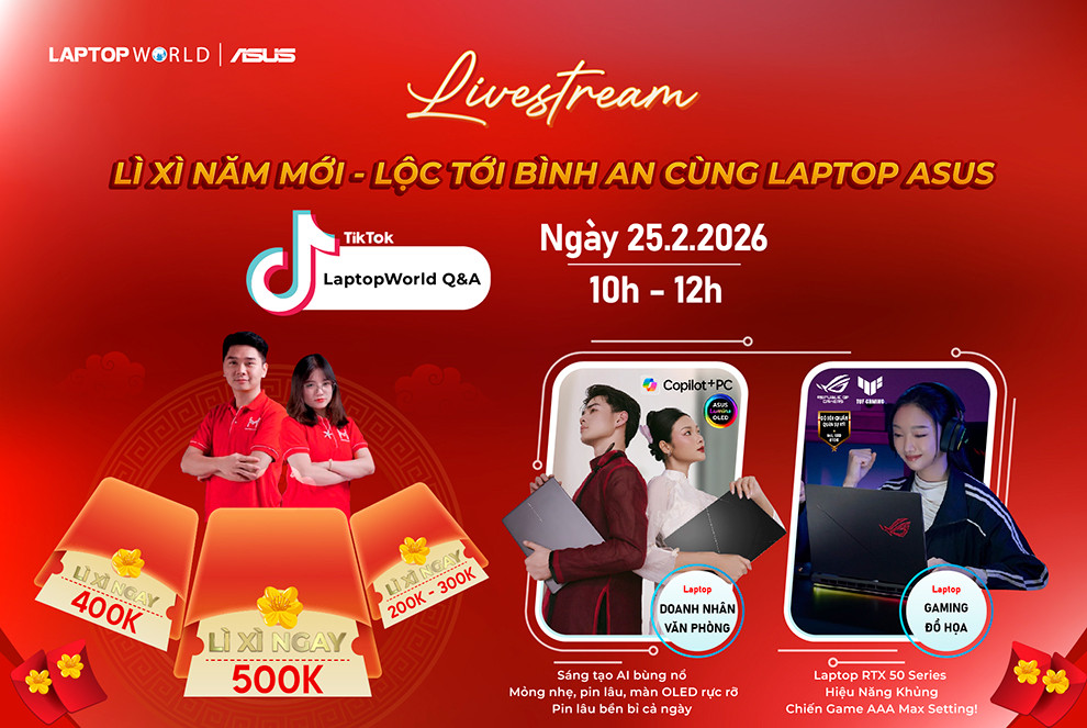 LaptopWorld phối hợp cùng hãng máy tính Asus mang đến buổi Livestream đặc biệt đầu xuân năm mới Bính Ngọ 2026