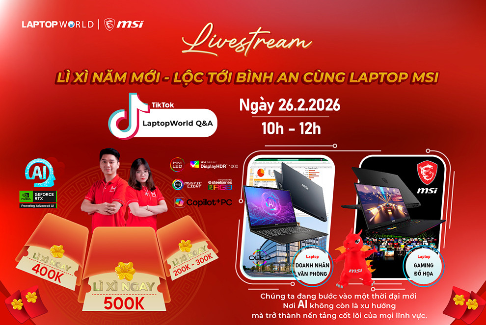 LaptopWorld phối hợp cùng hãng máy tính MSI mang đến buổi Livestream đặc biệt đầu xuân năm mới Bính Ngọ 2026