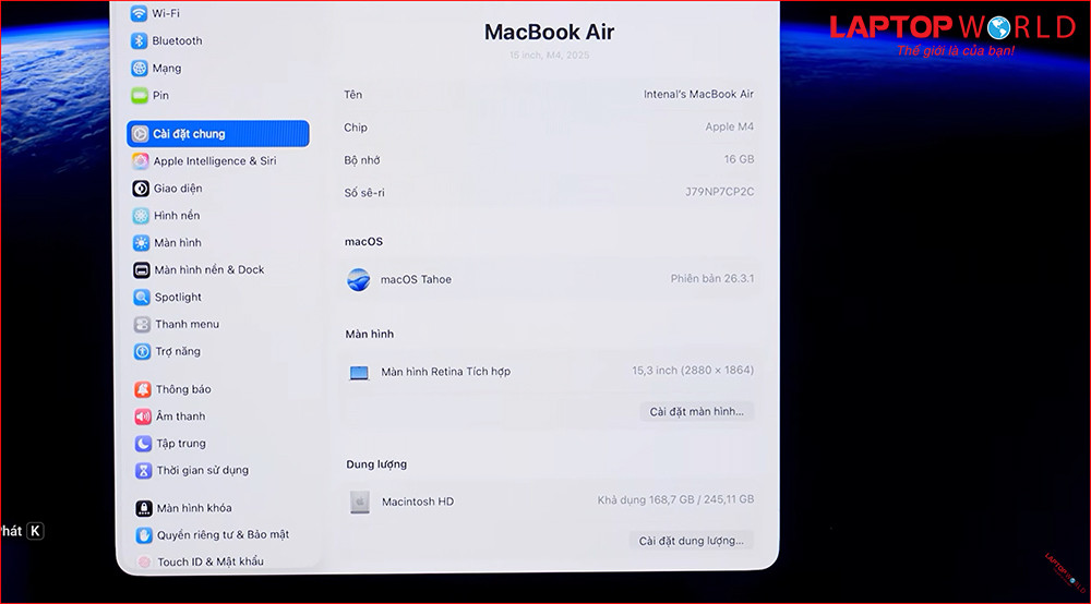 Lần đầu tiên, dòng Air được trang bị con chip Apple M4 với 10 nhân CPU và 10 nhân GPU. Điểm đáng chú ý nhất chính là khả năng hỗ trợ Ray Tracing bằng phần cứng, giúp việc xử lý hình ảnh, render video hay chơi các tựa game đồ họa nặng trở nên mượt mà hơn bao giờ hết.