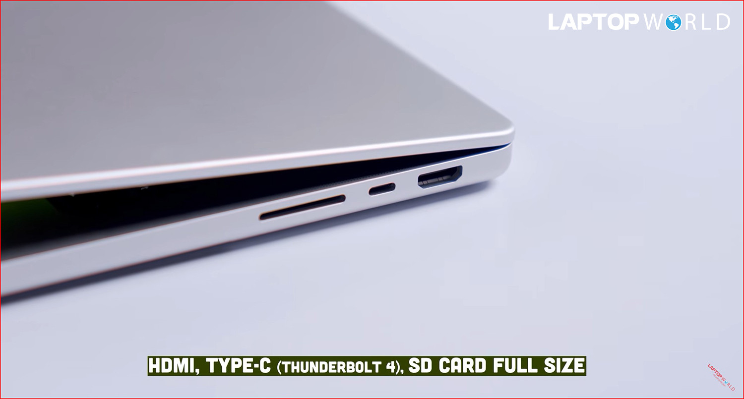 Khe thẻ nhớ SDXC Cổng HDMI Jack cắm tai nghe 3,5 mm Cổng MagSafe 3 M5