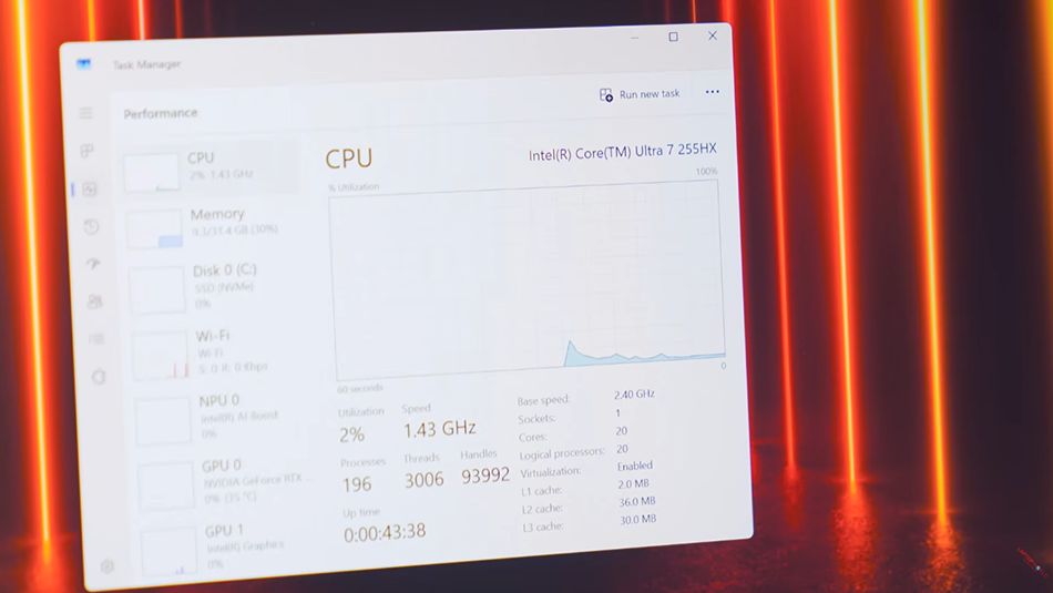 Sức mạnh của MSI Crosshair 16 HX AI đến từ bộ vi xử lý Intel® Core™ Ultra 7 255HX với xung nhịp tối đa lên tới 5.20GHz và bộ nhớ đệm 30MB. Đây là dòng CPU hiệu năng cao, tối ưu cho đa nhiệm, gaming và các tác vụ AI hiện đại.
