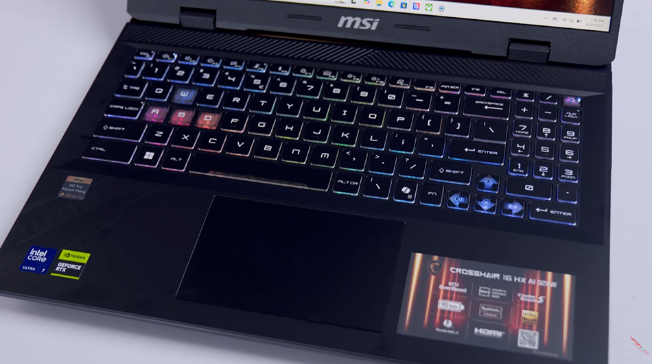 Một trong những điểm nổi bật giúp MSI Crosshair 16 HX AI ghi điểm chính là màn hình 16 inch QHD+ (2560x1600), tỷ lệ 16:10. Tấm nền IPS kết hợp tần số quét 240Hz mang lại trải nghiệm hình ảnh mượt mà, đặc biệt trong các tựa game FPS và eSports.