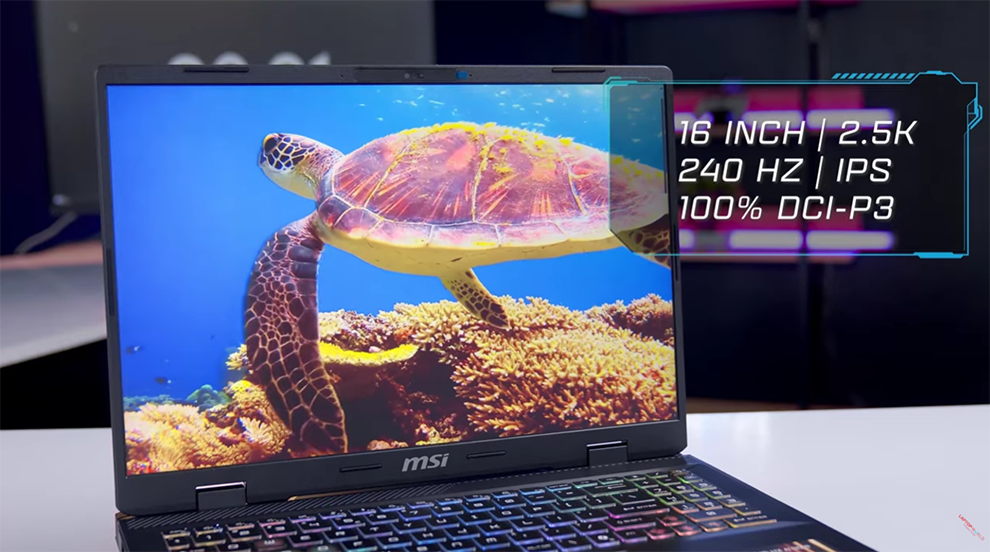 Màn hình 16 inch QHD+ (2560×1600) mang lại không gian làm việc rộng rãi, chi tiết sắc nét. Tấm nền IPS-Level cho góc nhìn rộng, màu sắc sống động, kết hợp với 100% DCI-P3 đáp ứng hoàn hảo cho xử lý ảnh, dựng video hay sáng tạo nội dung chuyên nghiệp. Tần số quét 240Hz giúp chuyển động mượt mà, giảm bóng mờ và xé hình – cực lý tưởng cho các tựa game FPS tốc độ cao.