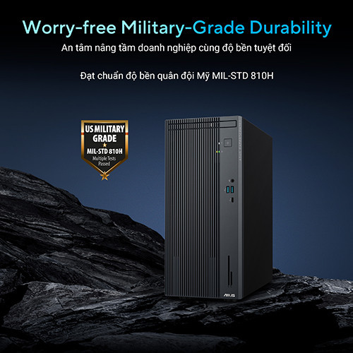 ASUS ExpertCenter P500 Mini Tower mang đến sự kết hợp hoàn hảo giữa hiệu năng mạnh mẽ, khả năng bảo mật cấp doanh nghiệp và dịch vụ chuyên nghiệp, tất cả trong một thiết kế nhỏ gọn, tinh tế. Sản phẩm hướng đến các doanh nghiệp vừa và nhỏ với ngân sách tối ưu, giúp không gian làm việc trở nên gọn gàng và linh hoạt hơn. Đặc biệt, máy được chế tạo theo tiêu chuẩn khắt khe MIL-STD-810H của quân đội Hoa Kỳ, đảm bảo độ bền bỉ và tin cậy lâu dài. Ngoài ra, khung máy thiết kế thông minh hỗ trợ mở rộng mà không cần công cụ, mang đến sự tiện lợi tối đa cho việc nâng cấp và đáp ứng nhu cầu của các chuyên gia.